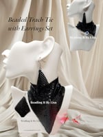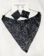 Original product name: Trach Sequin Scarf for Tracheostomy, Cover Necklace And Earrings Set, Trach Ties, Special Occasion Adjustable (BLACK 3 Piece Set )