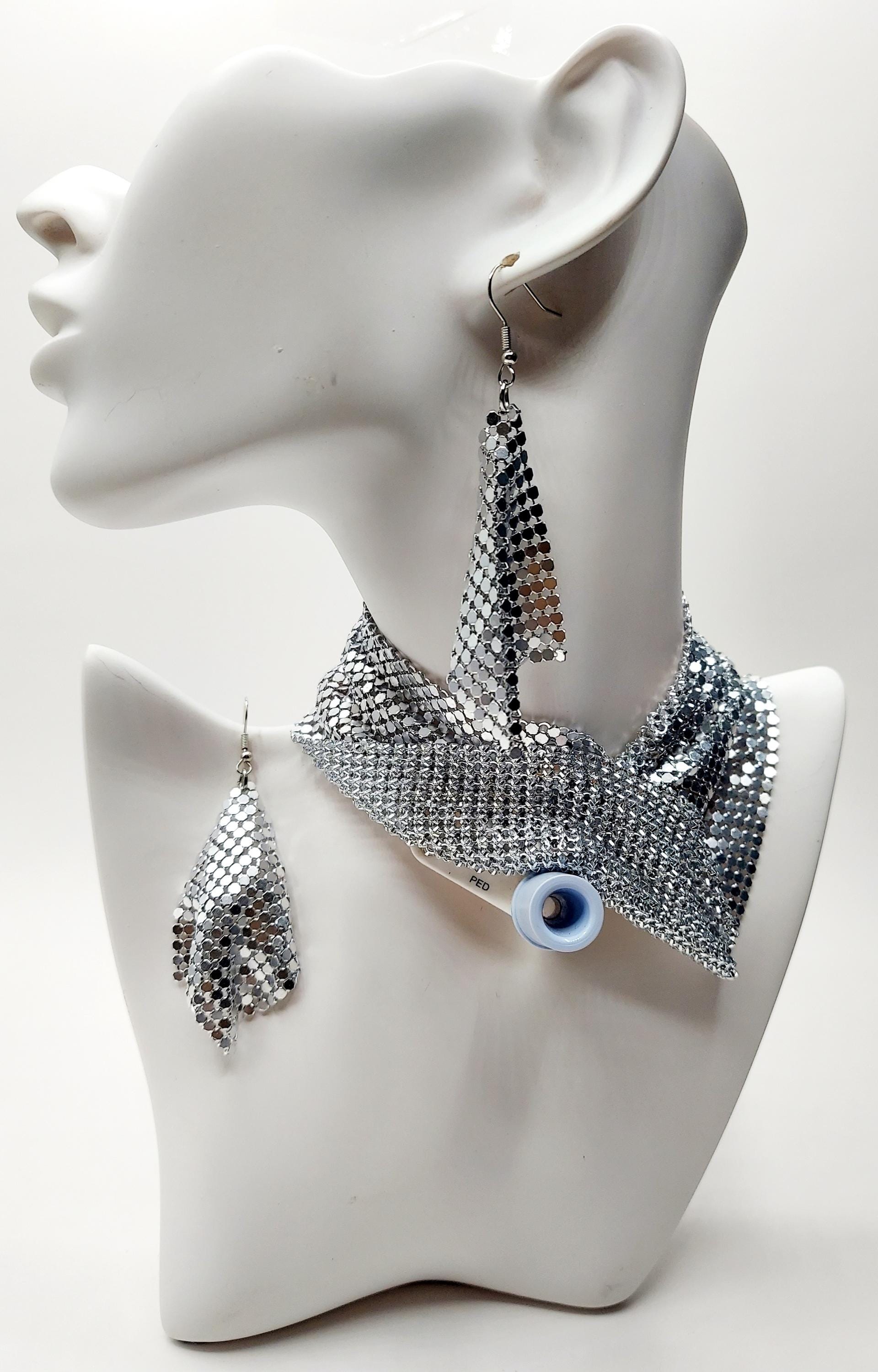 Original product name: Trach Sequin Scarf for Tracheostomy, Necklace and Earring Set, Trach Ties, Adjustable (SILVER 3 Piece Set ) for Special Ocassions